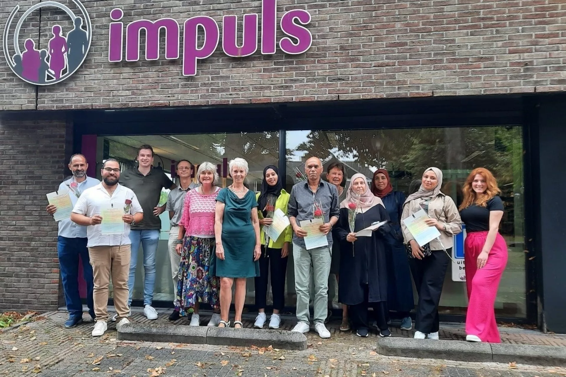 Wanneer statushouders in onze gemeente komen wonen hebben ze een inburgeringsplicht. Hierin staat de taal, Nederlands leren, centraal. Ze moeten ook kennis krijgen van de Nederlandse samenleving, waardoor integratie en participatie makkelijker kunnen gaan. Hiervoor volgen ze een participatieverklaringstraject, kortweg PVT genoemd. Impuls biedt deze mogelijkheid aan voor de statushouders. Dit traject wordt afgesloten met een samenvatting van alle themabijeenkomsten en het ondertekenen van de participatieverklaring. Op de foto is er weer een groep geslaagd voor deze PVT. Samen met de vrijwilligers die hen begeleiden en de regievoerder van de gemeente zijn deze statushouders in het zonnetje gezet.