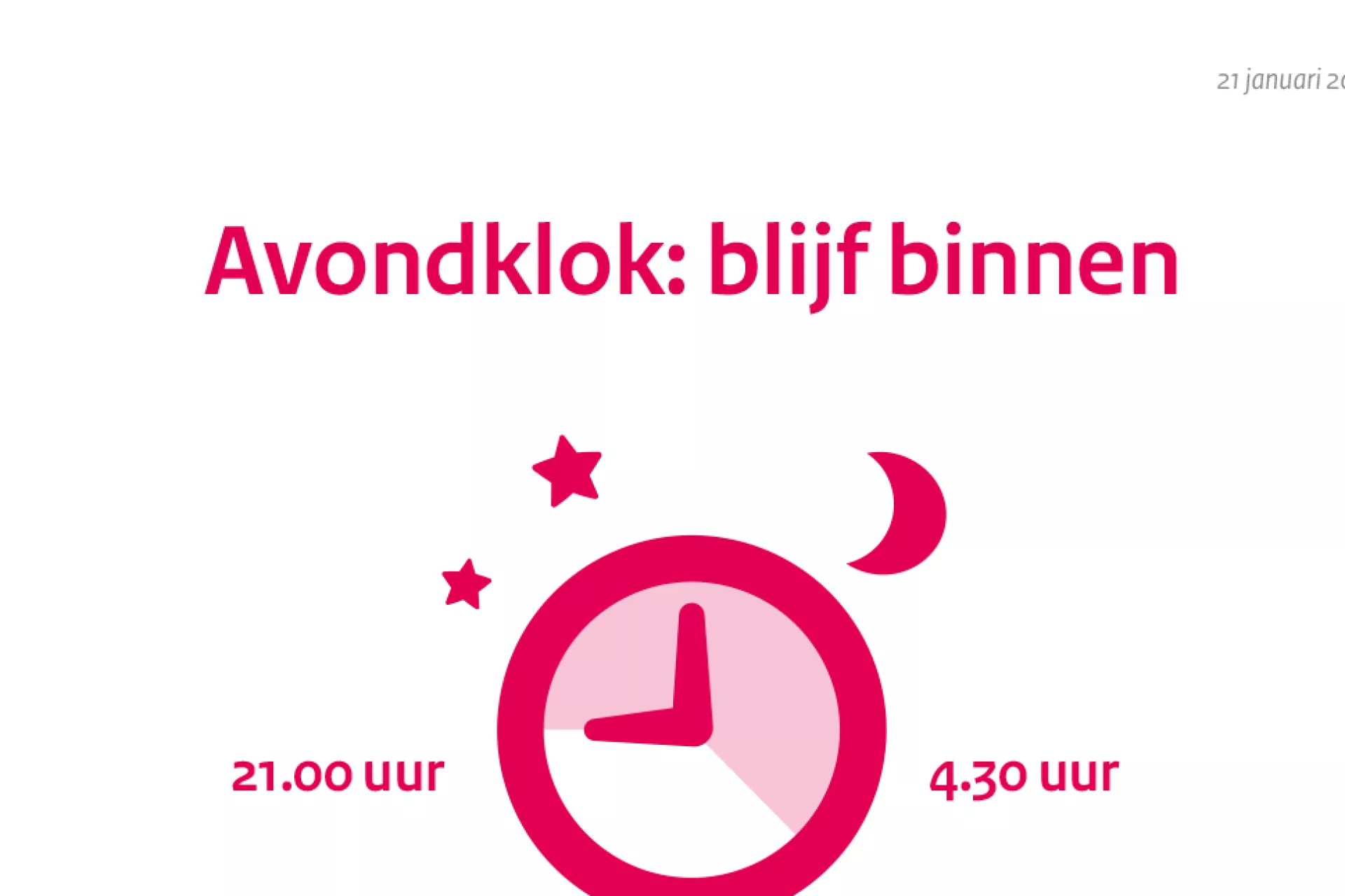 Na drie maanden stopt de avondklok in Nederland. De winkels gaan open op afspraak en er mogen maximaal twee gasten per dag op visite komen thuis. De overheid komt met een stappenplan om de coronamaatregelen los te laten.