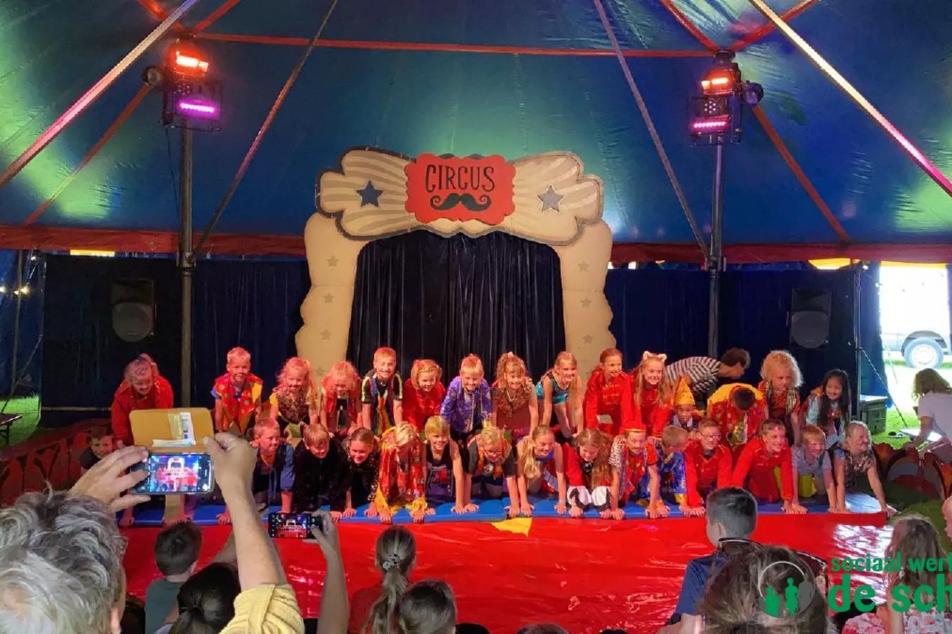 In juli organiseerde Sociaal Werk De Schans met Jantje Beton een circusweek voor kinderen. Onder begeleiding van Circus Snor werd er door 34 kinderen een week lang keihard gewerkt aan een verrassend circus programma. Met als resultaat een echte voorstelling in een echte circus tent! Vrijdag 6 juli was het eindelijk zover en mochten de kinderen optreden voor hun ouders, broertjes en zusjes, opa's en oma's en andere genodigden. Enigszins gespannen maar vooral goedgemutst hebben de kinderen er een mooi feestje van gemaakt. Onder luid (en verdiend) applaus volgden de acts elkaar op met de piramide als slotakkoord. Een zeer geslaagde show dus!