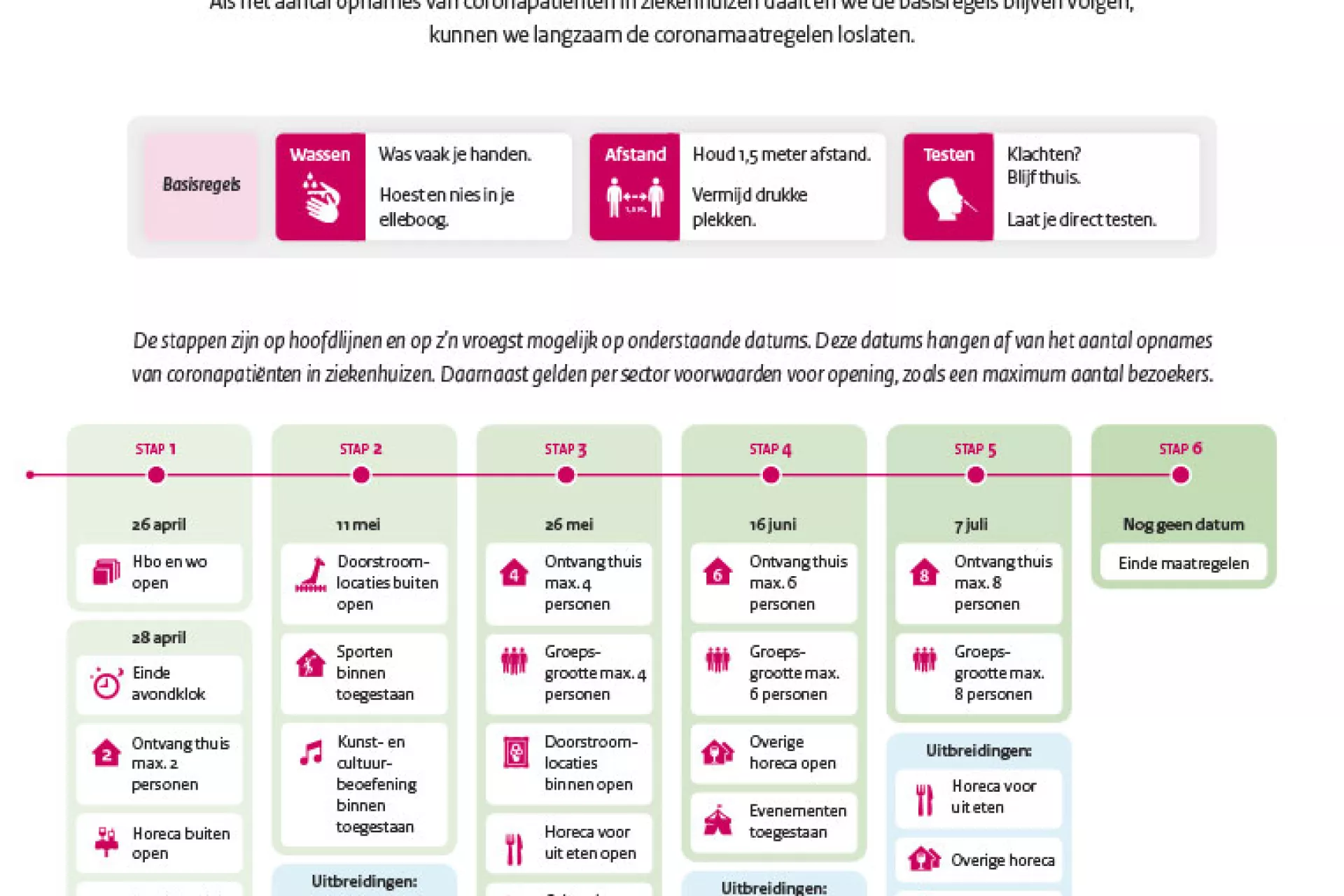 Na drie maanden stopt de avondklok in Nederland. De winkels gaan open op afspraak en er mogen maximaal twee gasten per dag op visite komen thuis. De overheid komt met een stappenplan om de coronamaatregelen los te laten.